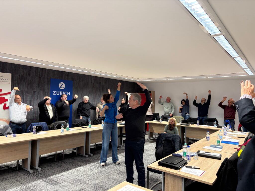 Fachlich im Mittelpunkt stand zudem der Vortrag von Gabi Bied und Evi Lindner aus dem Geschäftsbereich „Sport und Gesundheit“ des Landessportbundes Hessen. Sie stellten den Alltags-Fitness-Test (AFT) vor – ein wissenschaftlich fundiertes Verfahren, das vor allem Menschen ab etwa 60 Jahren eine Einschätzung ihrer alltagsrelevanten körperlichen Leistungsfähigkeit ermöglicht. Mit einfachen Übungen werden Kraft, Beweglichkeit, Ausdauer und Geschicklichkeit überprüft und mit alters- und geschlechtsspezifischen Vergleichswerten abgeglichen.